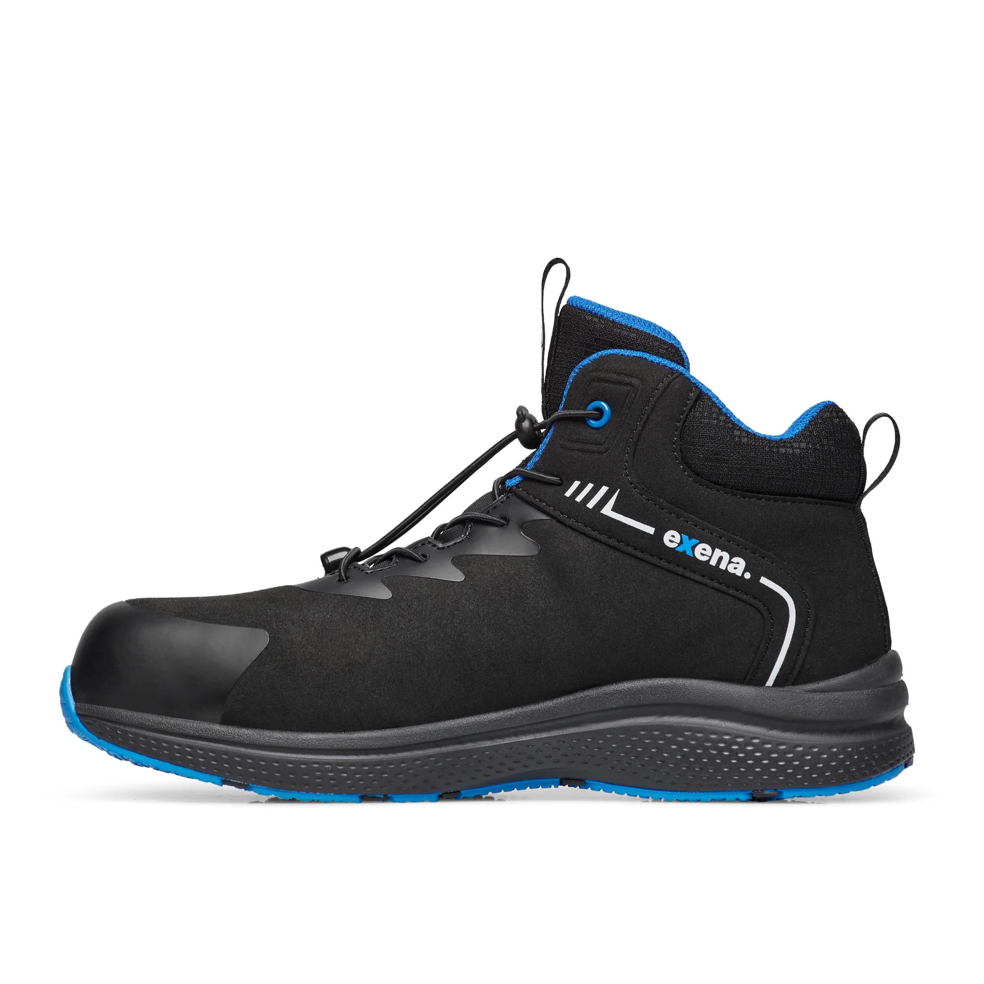 Bocancii de protectie Exena Faster S3 S FO SR ESD sunt fabricati din microfibra respirabila cu pelicula rezistenta la abraziune si vin echipati cu bombeu din aluminiu (200J) si lamela antiperforatie nemetalica. Captuseala textila si rezistenta la abraziune asigura confort si respirabilitate pe parcursul intregii zile, iar brantul Rebound ofera amortizare optima. Talpa EVA + cauciuc este antiderapanta si flexibila, iar sistemul de inchidere prin perforatii si capse nemetalice garanteaza o fixare sigura. Datorita tratamentului ESD, Exena Faster protejeaza echipamentele electronice, fiind ideali pentru logistica, instalatii, electronica si automotive.