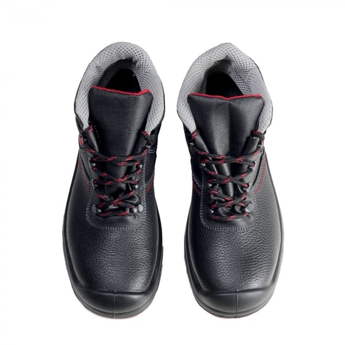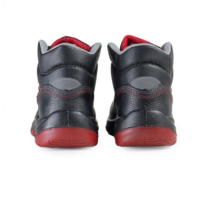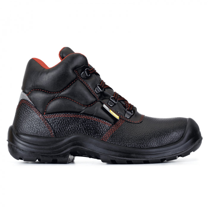 Bocanci de protectie S3 SRC din piele pigmentata de bovina, hidrofobizata, cu ornament reflectorizant, bombeu metalic din otel inoxidabil si lamela antiperforatie metalica. Confortul interior este asigurat de brantul cu forma anatomica din tesut pe suport poliuretanic si captuseala din material textil perforat, rezistent la abraziune si care asigura aerisirea piciorului. Talpa este injectata, din poliuretan dubla densitate, antistatica, antiderapanta, rezistenta la abraziune si hidrocarburi.