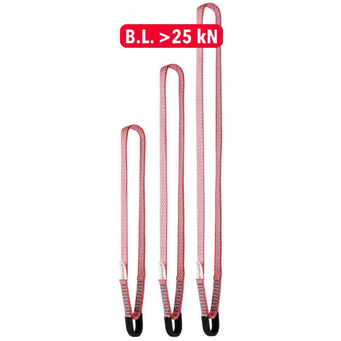 Bucla de ancorare din chinga Dyneema/PA cu latimea de 16 mm. Folosita ca lonja de ancorare sau mijloc de legatura. Rezistenta la rupere este de minimum 25 kN. Certificata conform EN 354, EN 566 si EN 795. Disponibile in lungimile: 60 cm, 80 cm, 100 cm, 120 cm, 160 cm, 200 cm. Alte lungimi la cerere.