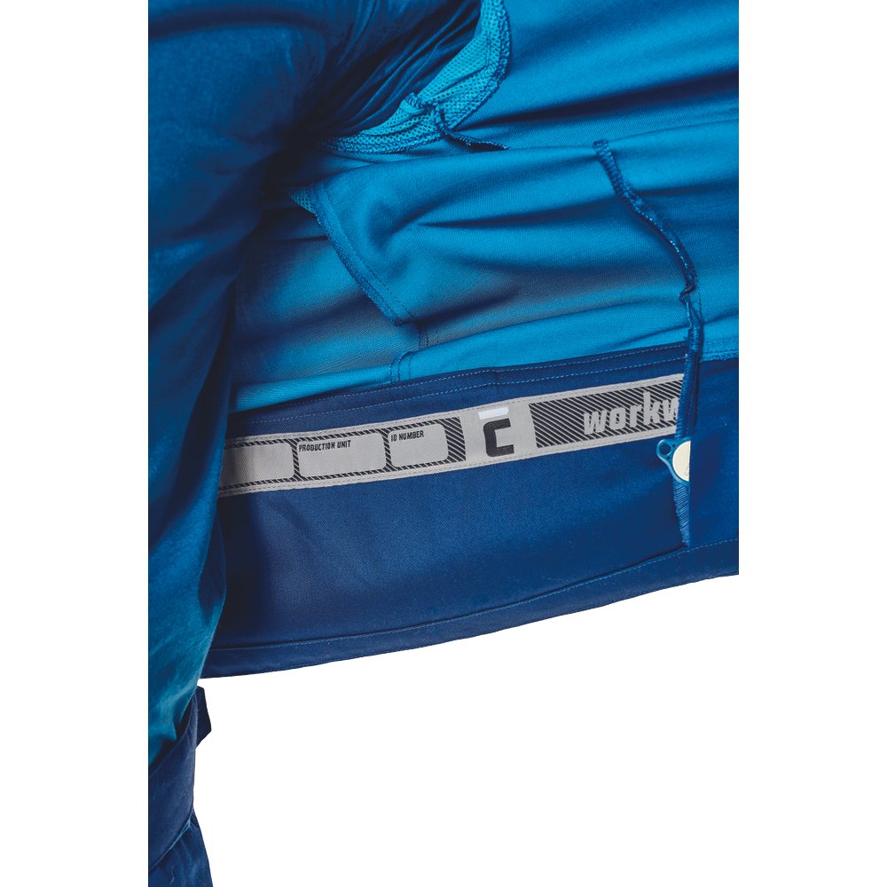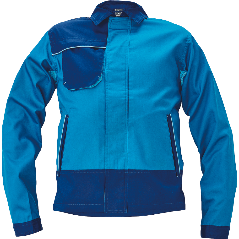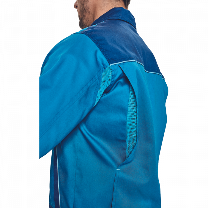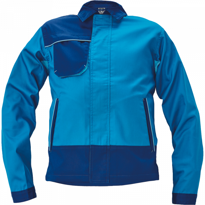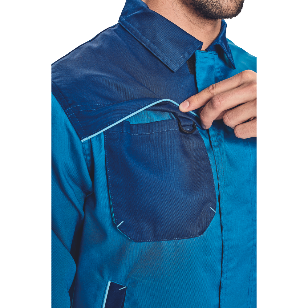 jacheta de lucru de barbati din amestec de bumbac si poliester twill elemente decorative in culori contrastante insertiile de plasa ofera respirabilitate fermoar acoperit si mansete cu inchidere 2 buzunare laterale 1 buzunar interior la piept cu inel tip D potrivit pentru spalare industriala
