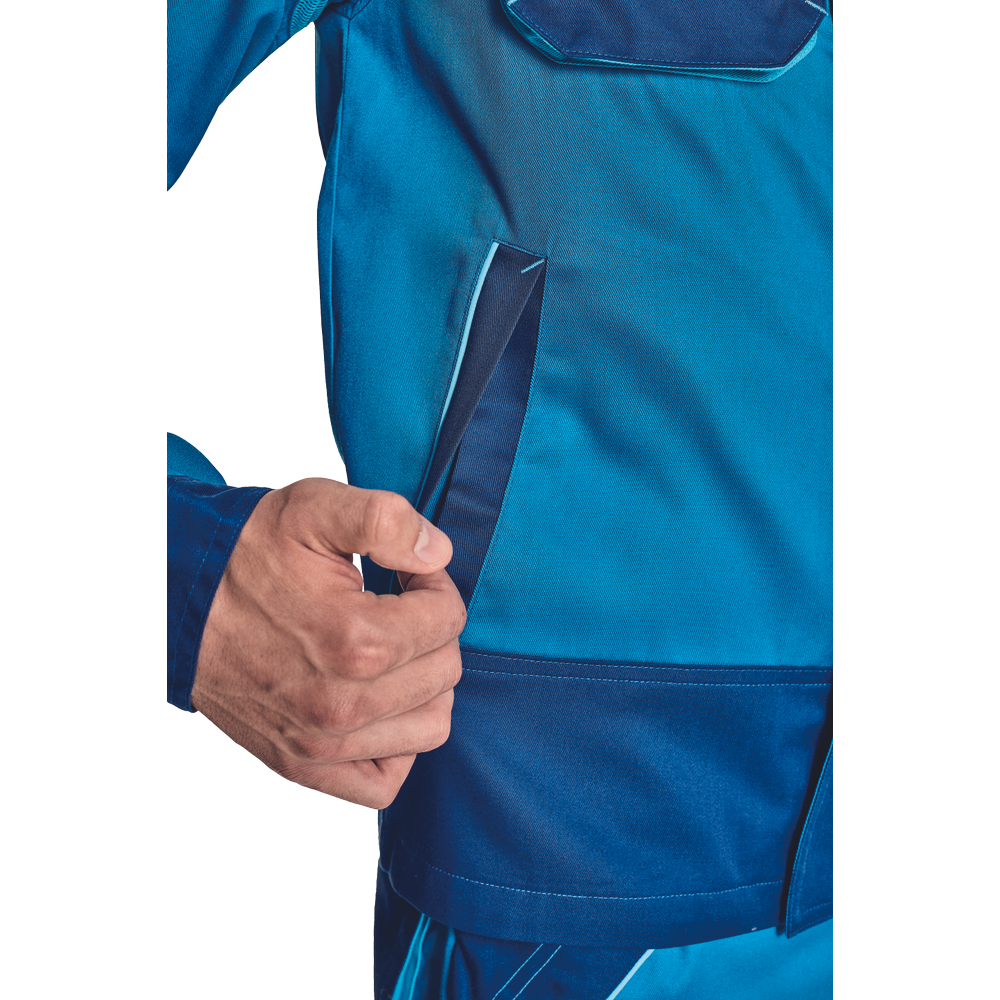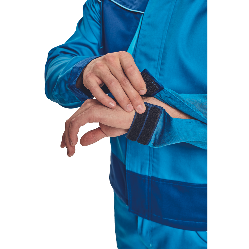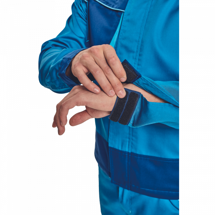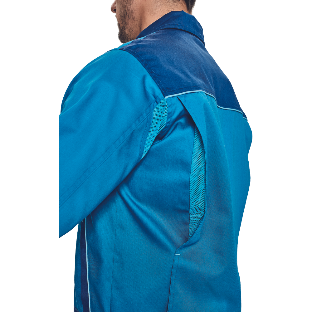 jacheta de lucru de barbati din amestec de bumbac si poliester twill elemente decorative in culori contrastante insertiile de plasa ofera respirabilitate fermoar acoperit si mansete cu inchidere 2 buzunare laterale 1 buzunar interior la piept cu inel tip D potrivit pentru spalare industriala