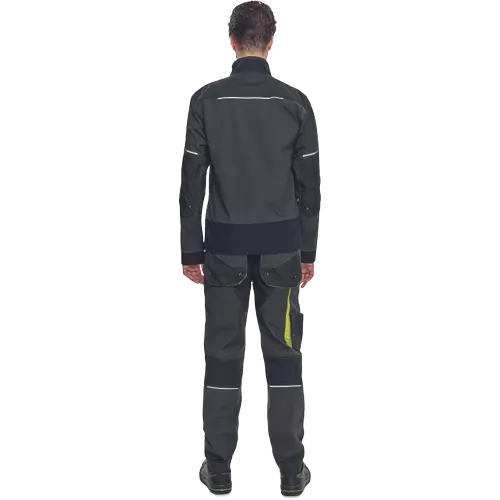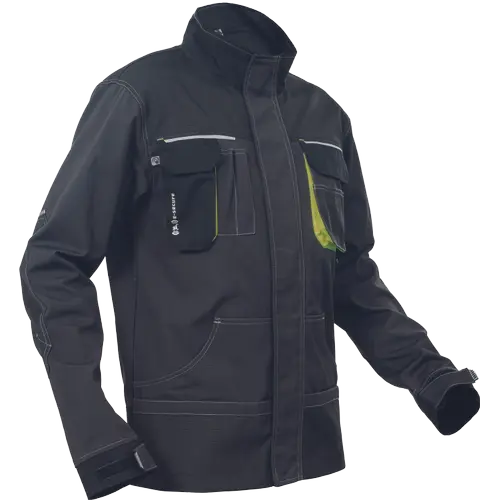 Jacheta de lucru, cu inchidere cu fermoar acoperit cu velcro, 2 buzunare frontale, 2 buzunare la piept, 1 buzunar la piept pentru telefon mobil, Intarire cot Oxford 600D, elemente reflectorizante si cusaturi de contrast