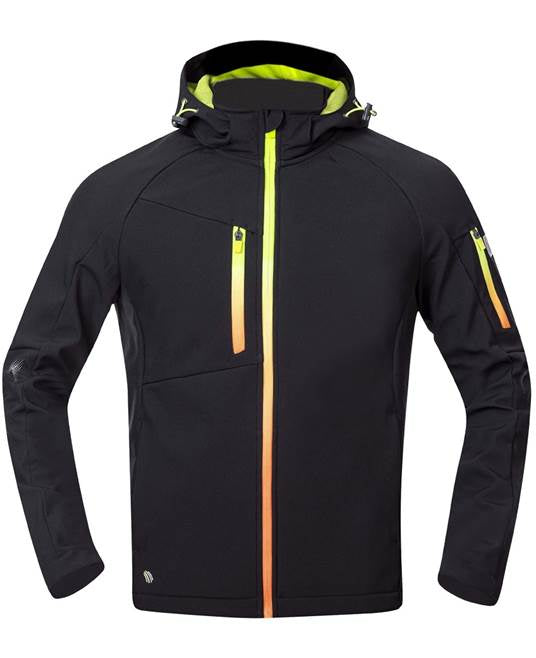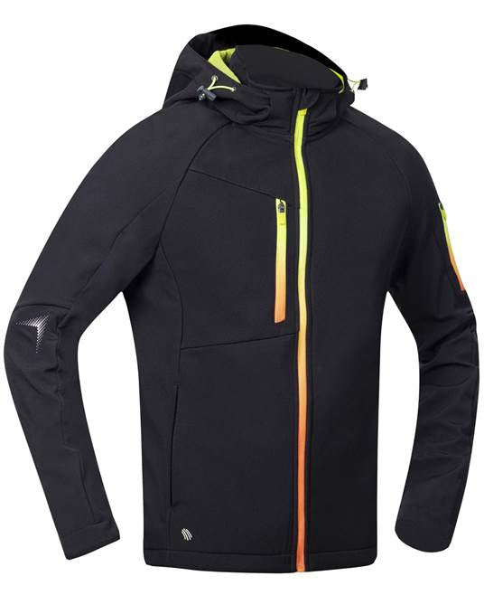 Jacheta softshell cu gluga din material elastic ElasticTechFlexi, partea interioara este din fleece placut.