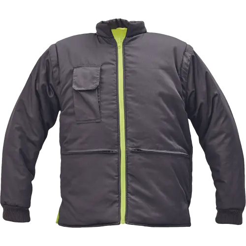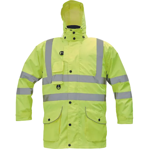 1 buzunar la piept cu fermoar, 2 buzunare laterale, 2 buzunare interioare, tivul buzunarelor reflectorizant