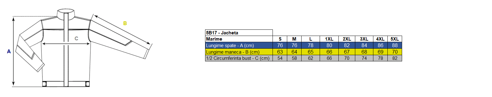 Limite de utilizare: Jacheta trebuie sa fie purtata incheiata pentru a asigura niveleul de protectie mentionat mai sus.