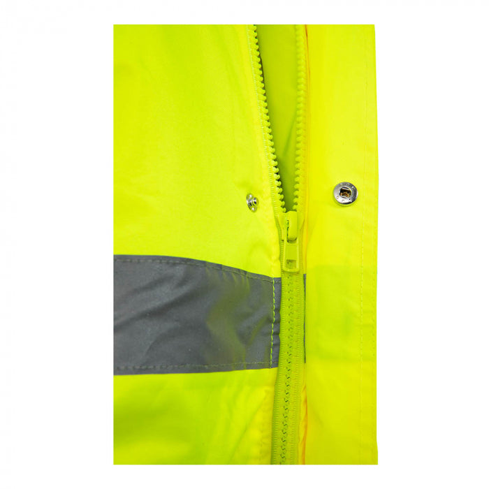 EN ISO20471: 2013+ A1:2016 Imbracaminte de protectie cu mare vizibilitate - metode de testare si cerinte EN ISO13688:2013 Imbracaminte de protectie - cerinte generale Aceasta jacheta a fost clasificata clasa 3 conform standardului mentionat mai sus EN ISO20471:2013+A1:2016 si clasele 3 ( penetratie de apa) si 1( (rezistenta la vapori de apa) conform normei EN 343:2003+A1:2007.