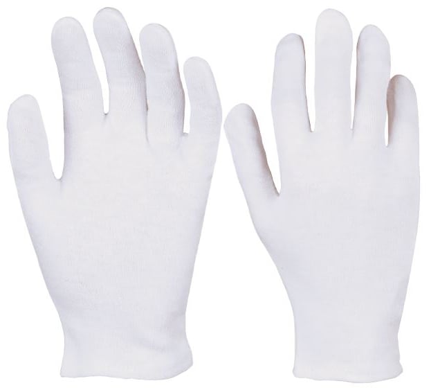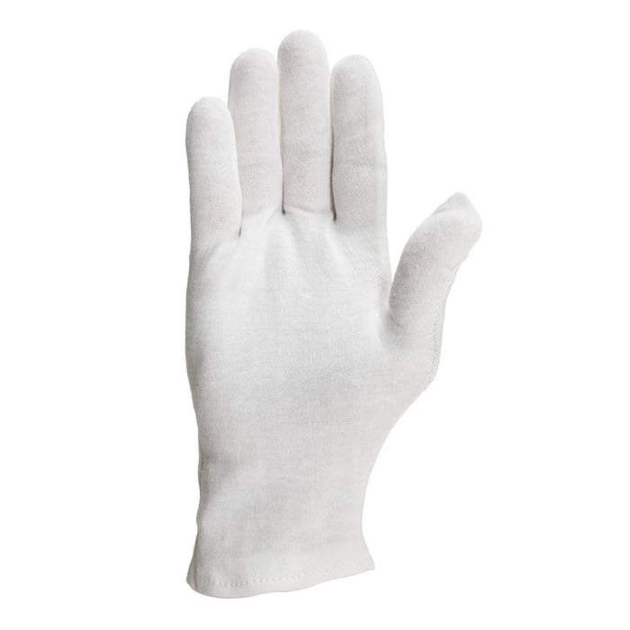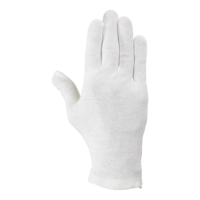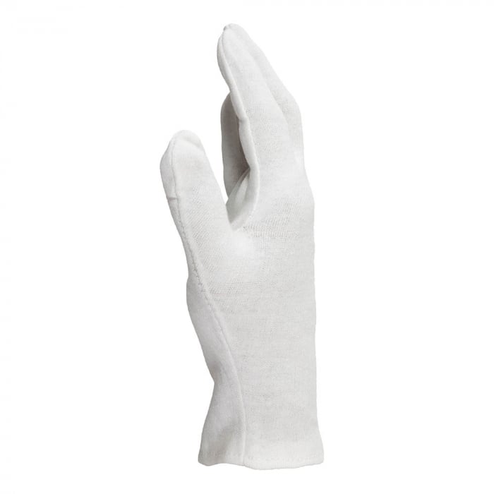 Manusi din bumbac alb, tricotat. Manusa de protectie de conceptie simpla pentru riscuri minime (cat I), flexibile, lungime