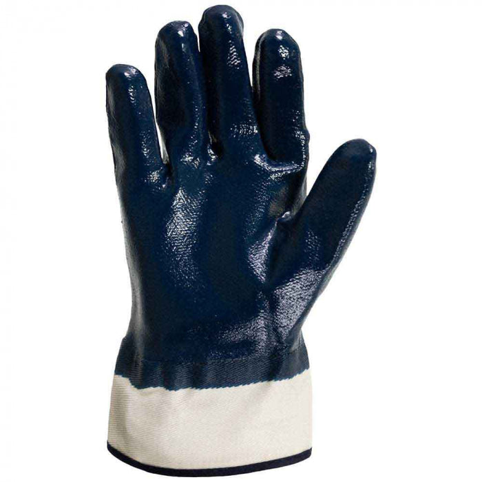 CONSTRUCTIE: manusa din tricot de bumbac, impregnata total cu cauciuc nitrilic, manseta larga caserata, lungime aprox.260 mm.