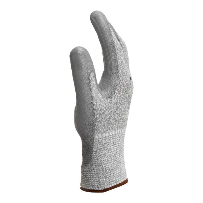 Manusi tricotate la masina din fibre HPPE si nailon, acoperite cu un strat de poliuretan in palma si pe degete, manseta elastica.