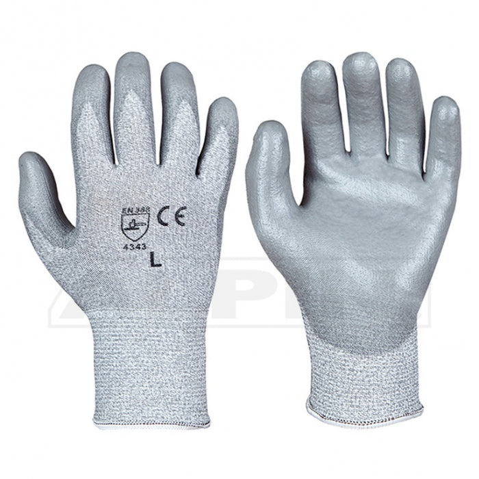 Manusile sunt fabricate din poliuretan pe captuseli tricotate din polietilena de inalta performanta si cu fire de nailon pentru a oferi o buna rezistenta la taiere. Ideale pentru tabla, metale grele, cum ar fi constructia si reparatia navelor, lucrarile legate de sticla si orice lucrare care necesita o protectie suplimentara impotriva actiunilor mecanice. Manusa ofera o buna protectie impotriva taierii, abraziunii, ruperii si perforarii pe palma in conditii de manipulare uscata.