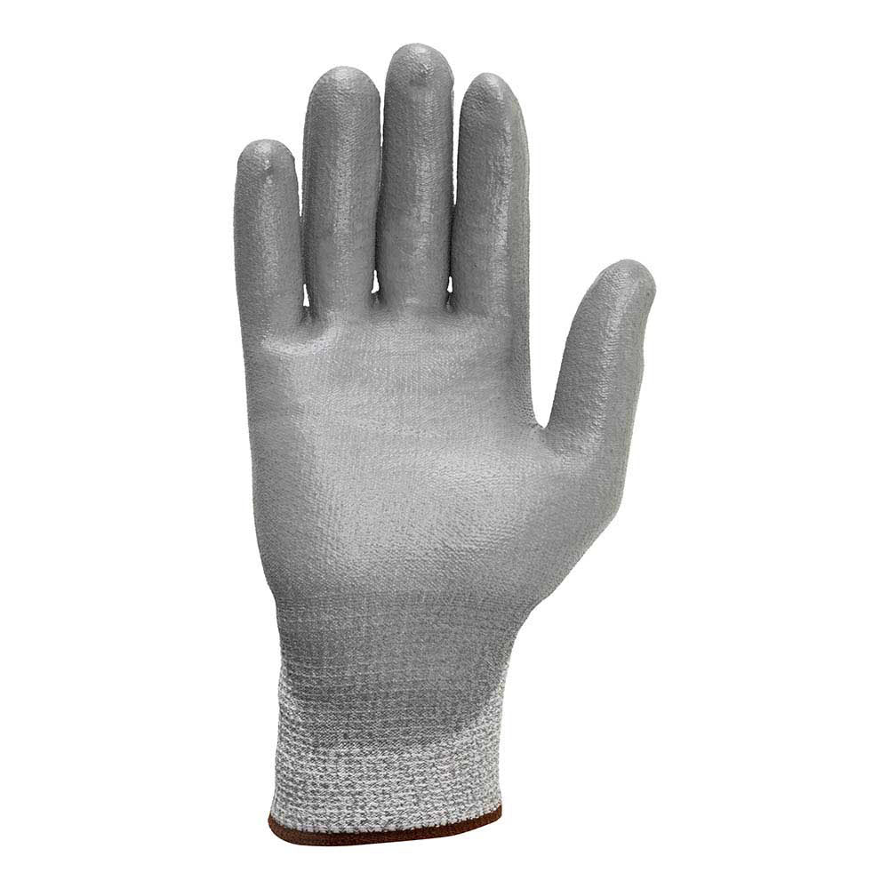 Manusi tricotate la masina din fibre HPPE si nailon, acoperite cu un strat de poliuretan in palma si pe degete, manseta elastica.