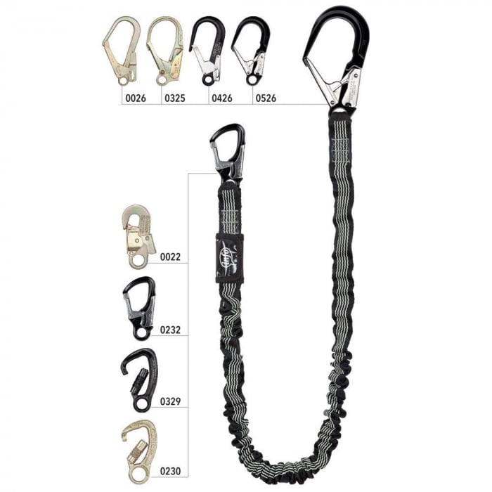 Mijloc de legatura cu absorbitor de energie integrat, conform EN 355. Absorbitorul de energie este plasat in interiorul chingii tubulare de rezistenta, cu latimea de 45 mm si are capacitatea de a absorbi eficient si in mod constant energia generate de cadere. Dotarea cu carabiniere se face conform optiunii clientului. Disponibil in lungimile 1,5 m si 2,0 m.