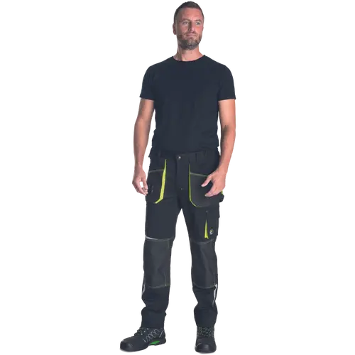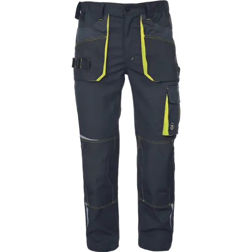 Pantaloni de lucru din tesatura elastica foarte rezistenta, talie elastica, buzunare multifunctionale, intarire Oxford 600D a buzunarelor pentru genunchi pentru introducerea genunchierelor, detalii reflectorizante segmentate imprimate, lungime reglabila
