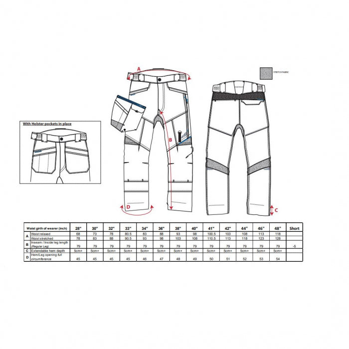 Pantaloni de lucru contemporani avand buzunare holster de depozitare. Confectionati din material polibumbac si avand cusaturi triple, acesti pantaloni prezinta o multitudine de caracteristici practice inclusiv buzunare cu doua siruri pentru genunchiere, talie posterioara ridicata si lungimea pantalonilor ajustabila. Panelurile stretch inovatoare ofera confort excelent si flexibilitate in zonele cheie de miscare