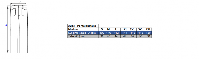 Marcare Eticheta permanenta a produsului contine : codul, marimea, marcajul CE, dimensiunile corpului operatorului (circumferinta : torace, talie, inaltime), compozitia tesaturii, pictograme reprezentand instructiunile de intretinere.