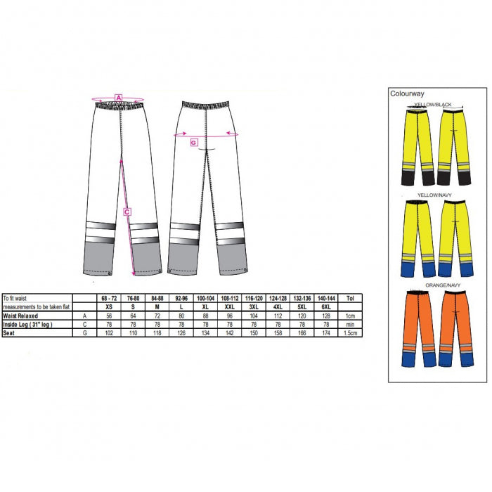 Pantaloni impermeabili reflectorizanti Portwest CONTRAST H444, 100% poliester, 200 gr/mp