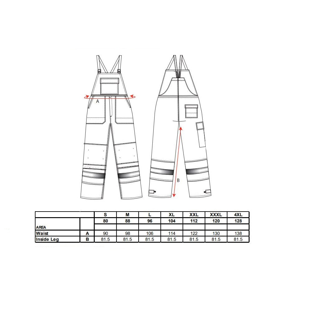 Aceasta salopeta cu bretele este confectionata din benzi reflectorizante cusute dublu pentru o durabilitate sporita. Caracteristicile includ cusaturi triple tighelite, benzi HiVis pe picioare si corp, doua buzunare frontale, un buzunar pentru rigla, un buzunar pe piept, un buzunar spate cu clapa si inchidere si deschidere reglabila la picioare.