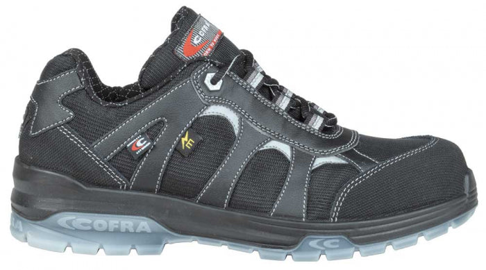 Brantul si talpa sunt foarete rezistente la electricitate. Intregul pantof a fost proiectat sa nu contina parti metalice; Fata fabricata din nailon si plasa, foarte respirabila si rezistenta la uzura (exclusiv la COFRA. brant EVANIT, fabricat din EVA (ethylene-vinyl-acetate = acetat de vininetilena) si un compus special de nitril cu o capacitate ridicata de purtare si grosime variabila. Prelucrat la cald, perforat si acoperit cu o panza foarte respirabila. Suport ANTI TORSION fabricat din policarbonat si fibra de sticla plasat convenabil intre toc si talpa, care confera sprijin si protectie pentru arcul plantar, prevenind astfel indoirile vatamatoare si/ sau rasucirile nedorite. Talpa parfumata. Bombeu cu protectie de piele.