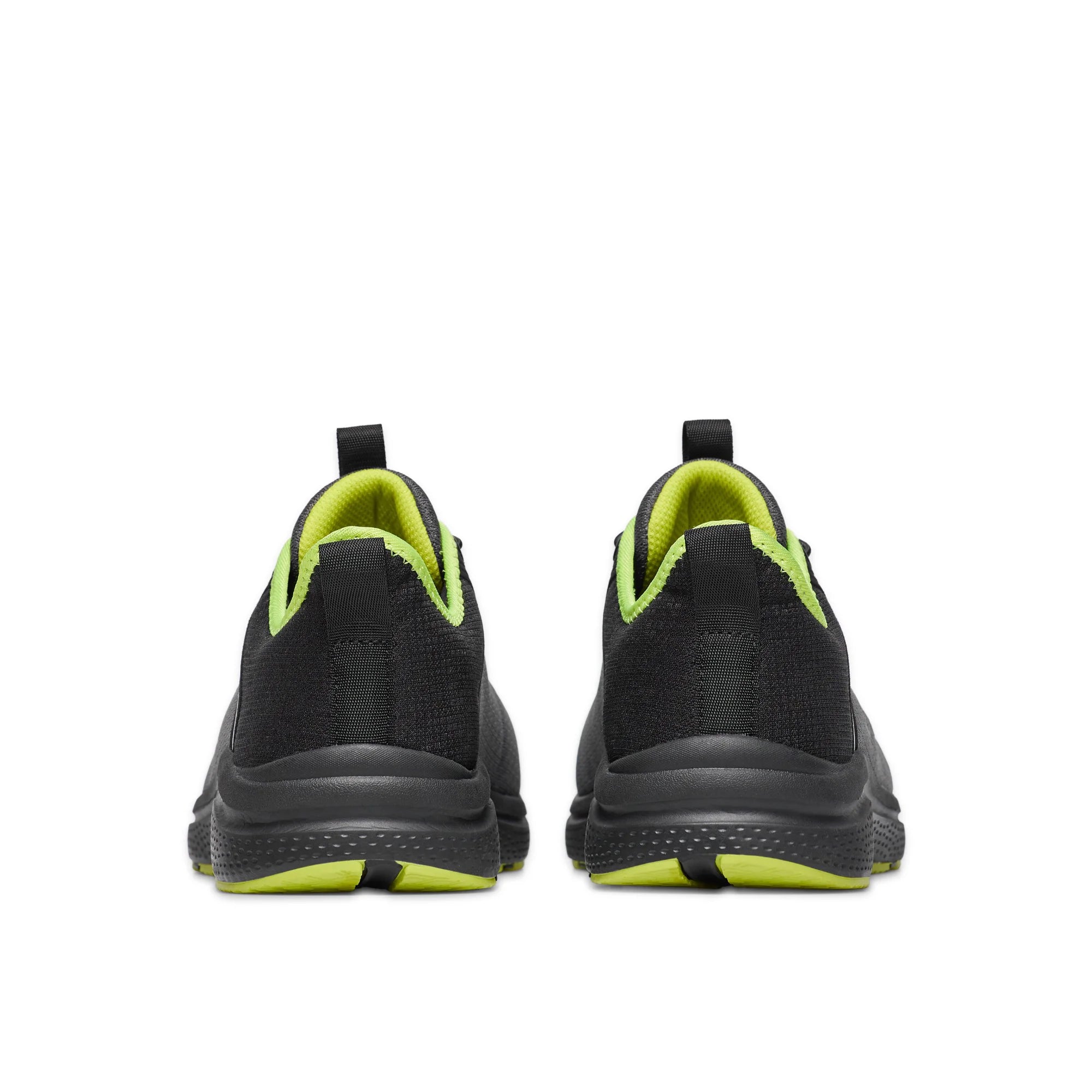 Pantofii de protectie Exena Rush S1 PS FO SR ESD sunt fabricati din material respirabil cu pelicula rezistenta la abraziune si vin echipati cu bombeu din aluminiu (200J) si lamela antiperforatie nemetalica. Captuseala textila si rezistenta la abraziune asigura confort si respirabilitate pe parcursul intregii zile, iar brantul Rebound ofera amortizare optima. Talpa EVA + cauciuc este antiderapanta si flexibila, iar sistemul de inchidere prin perforatii si capse nemetalice garanteaza o fixare sigura. Datorita tratamentului ESD, Exena Rush protejeaza echipamentele electronice, fiind ideali pentru logistica, instalatii, electronica si automotive.
