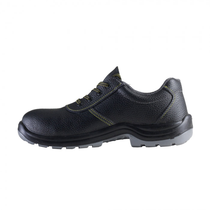 Pantofi de protectie S3 SRC din piele pigmentata de bovina, hidrofobizata, cu bombeu nemetalic din material compozit si lamela antiperforatie nemetalica. Asigura un confort ridicat datorita brantului anatomic, detasabil si antistatic din tesut de poliester si captuselii din material textil perforat care permite aerisirea piciorului. Talpa este injectata, din poliuretan dubla densitate, cu proprietati antistatice si antiderapante.