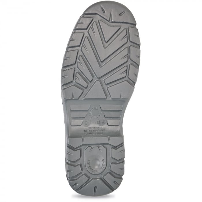 S1 SRC Sandale de protectie cu bombeu din material compozit, talpa din PU/PU antistatica, anti-alunecare, rezistenta la uleiuri, cu amortizor de socuri in calcai. Parte superioara din piele intoarsa tip velur.