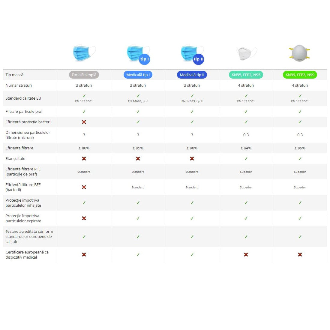 Respecta EN 14683:2019 (Tip II) si cerintele Directivei 93/42/EEC