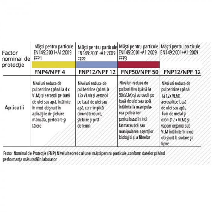 Cele 3 pliuri asigura o desfasurare sufiicienta pentru a acoperi nasul, gura si barbia pentru o pretectie completa.