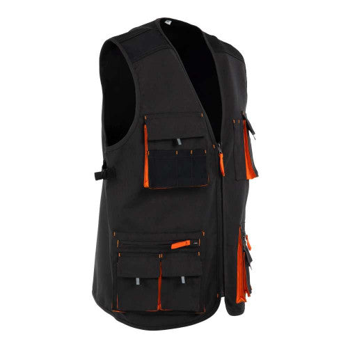 CONSTRUCTIE: vesta cu multiple buzunare aplicate, 2 buzunare talie mari inchidere cu fermoar si 4 buzunare mici aplicate inchidere cu clapeta si velcro, 2 buzunare piept inchidere cu clapeta si velcro, 5 buzunare pentru accesorii; sistem de inchidere frontal cu fermoar, 1 buzunar interior din plasa; sistem de ajustare lateral la nivelul pieptului.