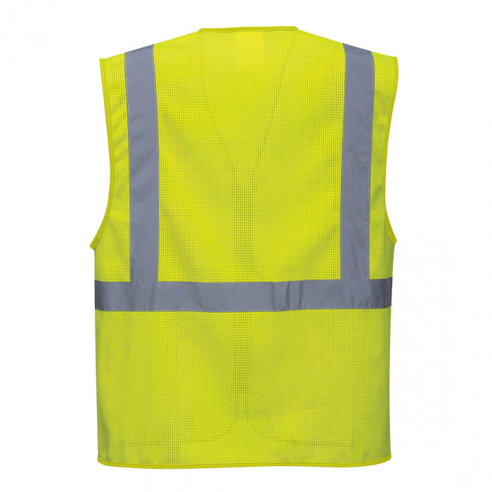 Tehnologia avansata MeshAir asigura o ventilare excelenta si mentine racoare utilizatorului. Tesatura MeshAir este conforma cu EN ISO 20471. Aceats vesta prezinta buzunare multiple, buzunar pentru ID, inel ptr statie si fermoar frontal