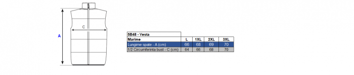 Constructie generala: Vesta este confectionata din material tip plasa, se inchide in fata cu velcro si are 2 benzi reflectorizante de 5 cm de jurimprejur.